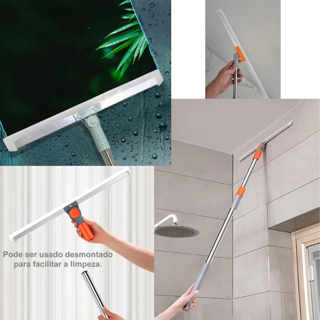 -33%Rodo Articulado de Silicone - Cabo Longo, Limpa Vidros, Piso e Porcelanato
